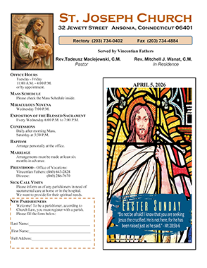 Bulletins Home / Bulletins Bulletins 2026 New Bulletins are added weekly. To view prior bulletins for our parish Bulletin-12April2026 Bulletin-05April2026 Bulletin-29March2026 Bulletin-22March2026 Bulletin-15March2026 Bulletin-08March2026 Bulletin-01March2026